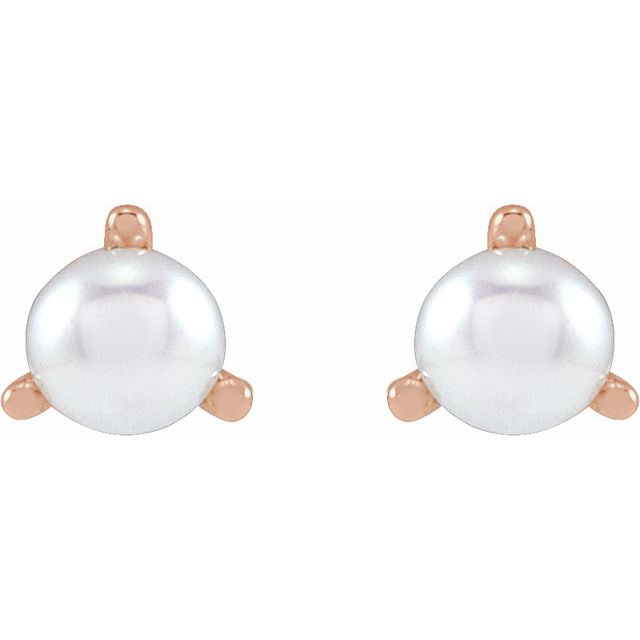 14K Rose 3 mm Cultured White Seed Pearl Earrings