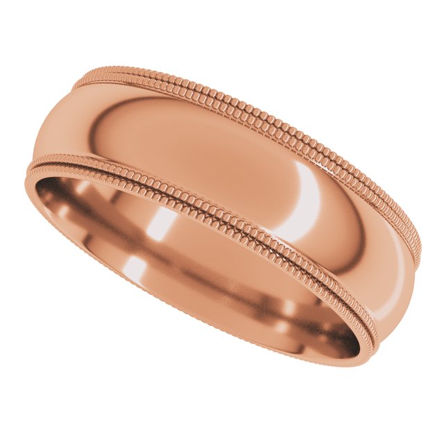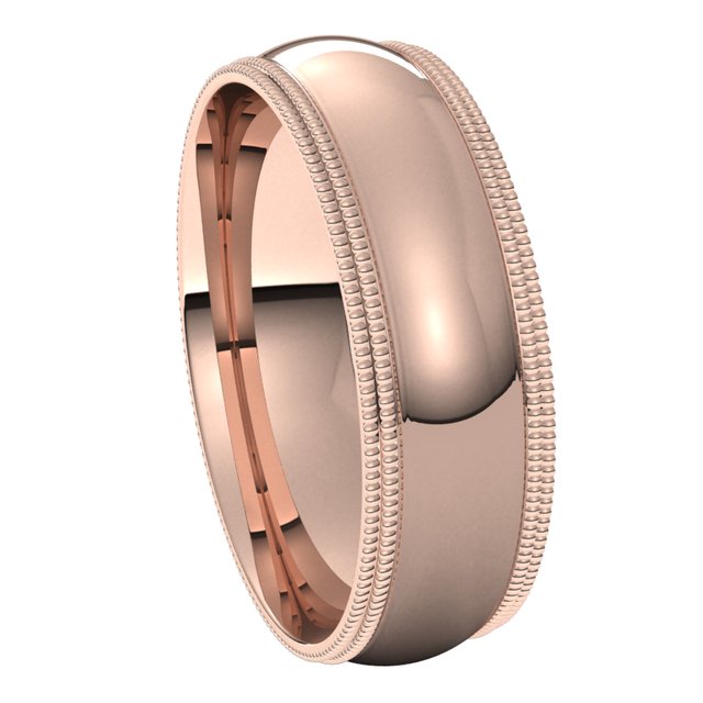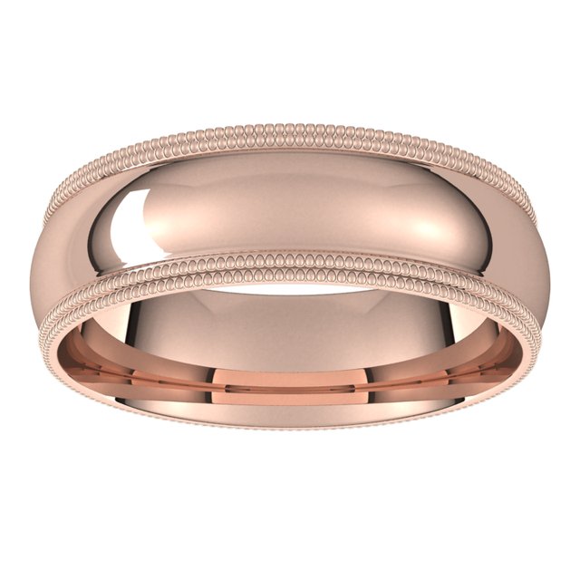 14k Rose 6 Mm Double Milgrain Half Round Comfort Fit Band Size 9.5