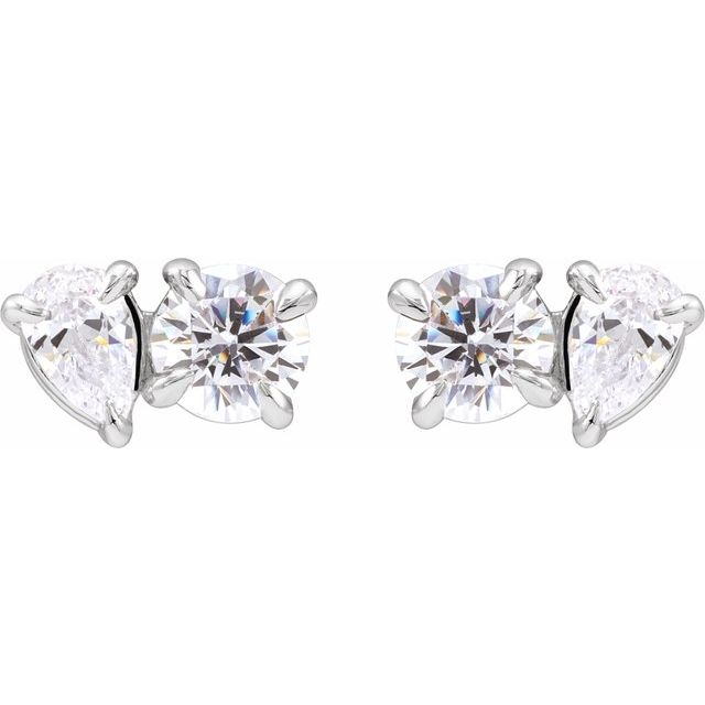 14K White 1 1/6 CTW Lab-Grown Diamond Two-Stone Stud Earrings
