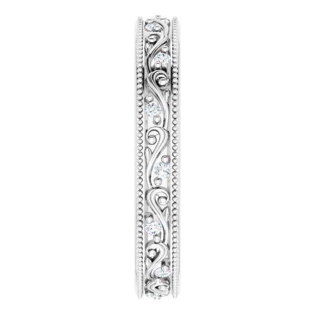 14K White 1/10 CTW Natural Diamond Floral Accented Band