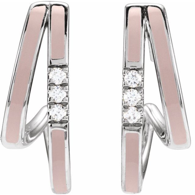 14K White 1/10 CTW Natural Diamond & Pink Enamel 17.3 mm Hoop Earrings