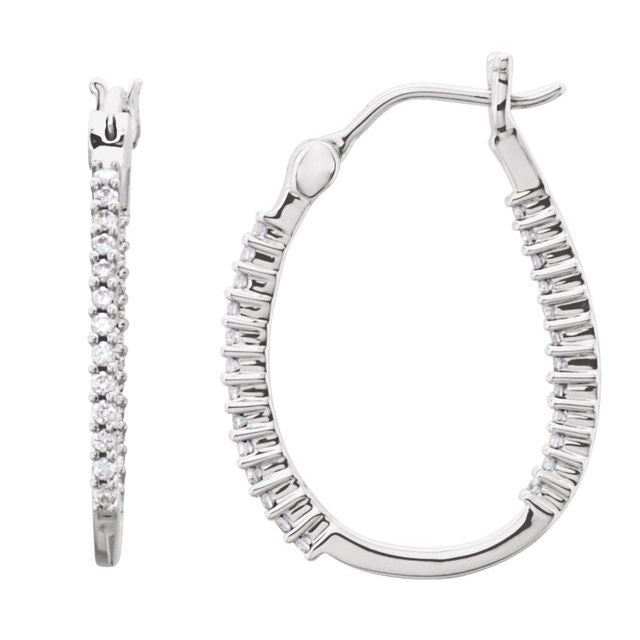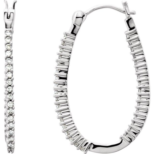 14K White 1/2 CTW Natural Diamond Inside-Outside Hoop Earrings