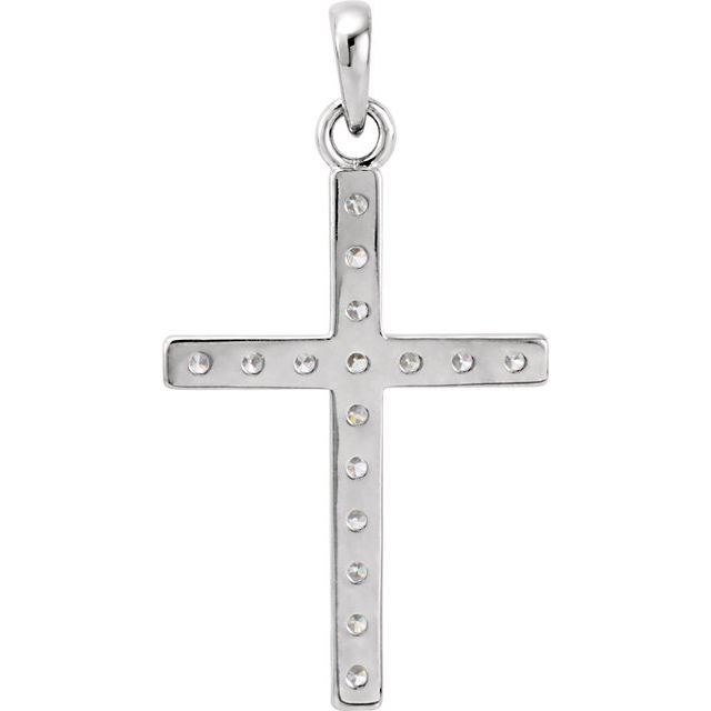 14K White 1/4 CTW Lab-Grown Diamond Cross Pendant