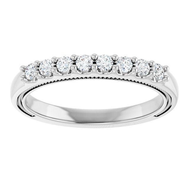 14K White 1/8 CTW Natural Diamond Milgrain Anniversary Band