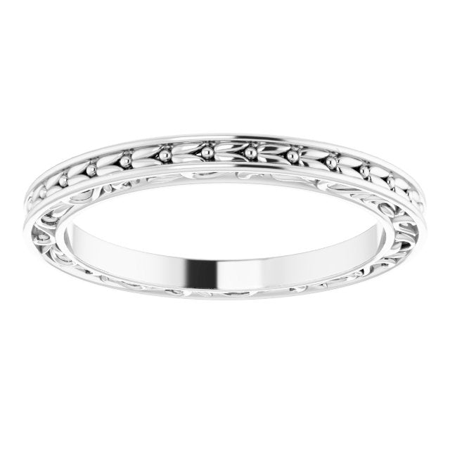 14K White 2 mm Sculptural-Inspired Leaf Band Size 6.5