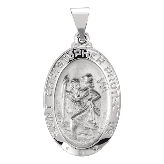 14K White 23.5x16 mm Oval Hollow St. Christopher Medal
