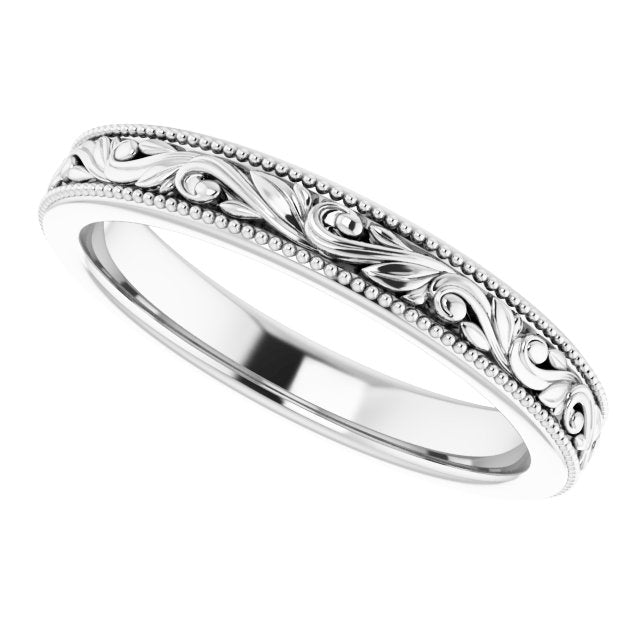 14k White 3.2 Mm Floral-inspired Band Size 8