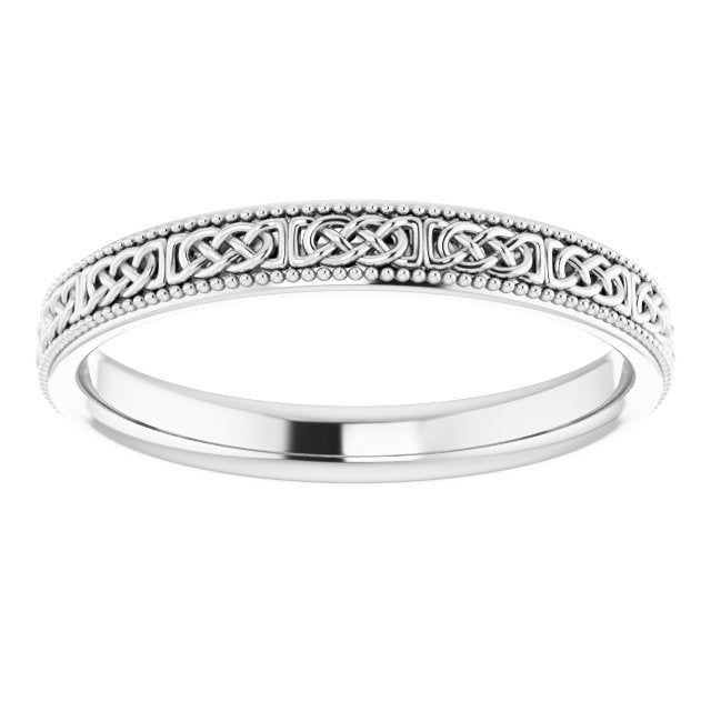 14K White 3 mm Celtic-Inspired Milgrain Band Size 7.5