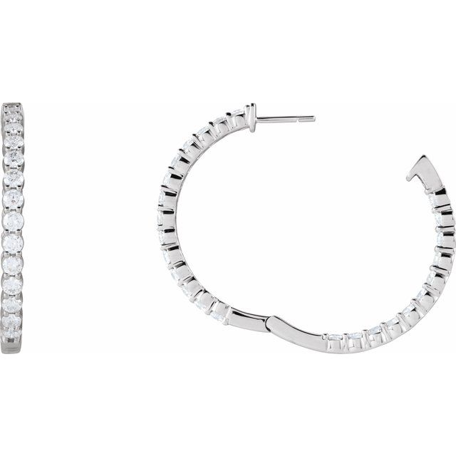 14K White 4 CTW Natural Diamond Inside-Outside Hinged 36 mm Hoop Earrings