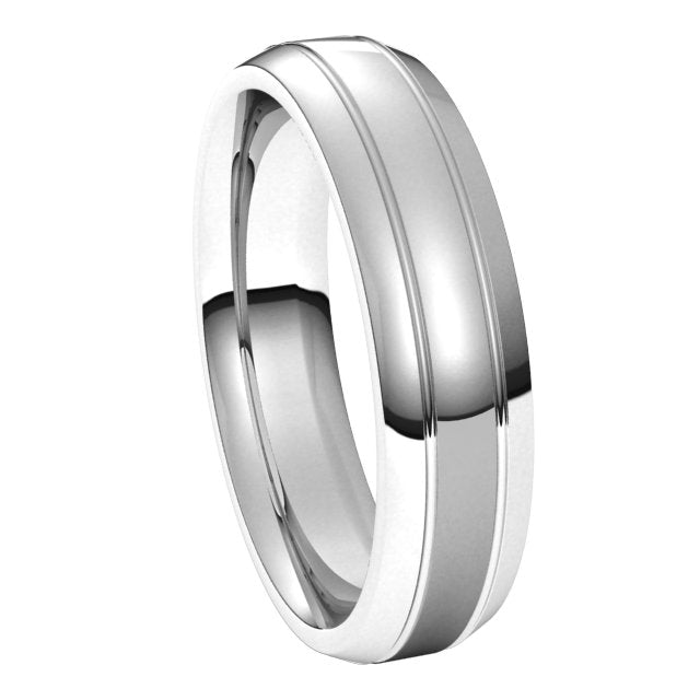 14K White 5 mm Grooved Beveled-Edge Band Size 7.5