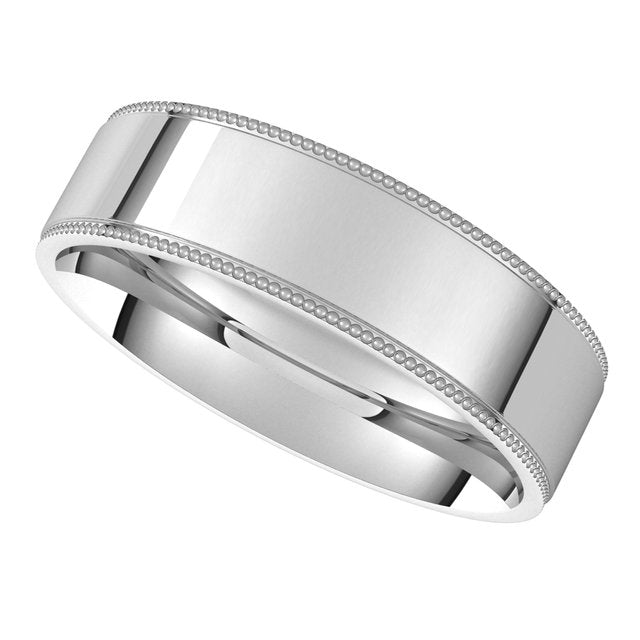 14K White 5 mm Milgrain Flat Comfort Fit Edge Band Size 7