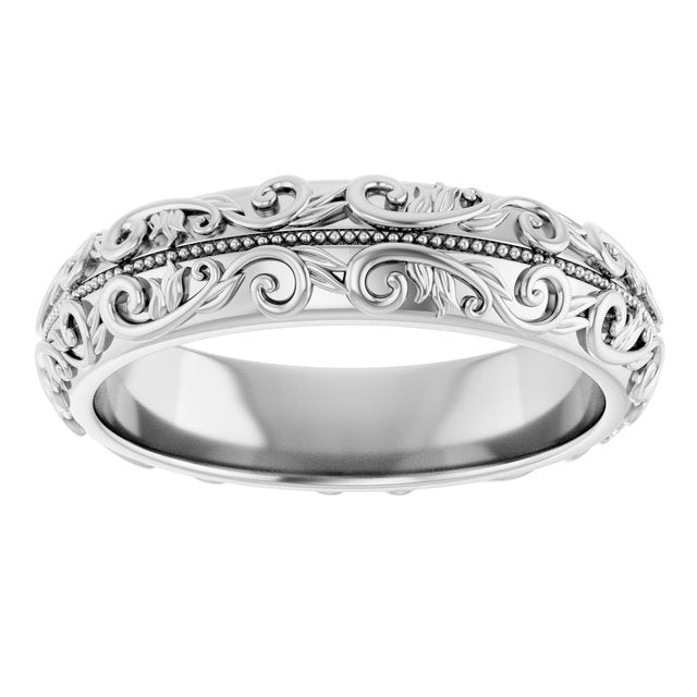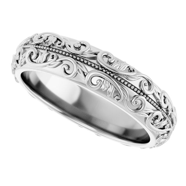 14K White 5 mm Sculptural Band with Milgrain Size 7