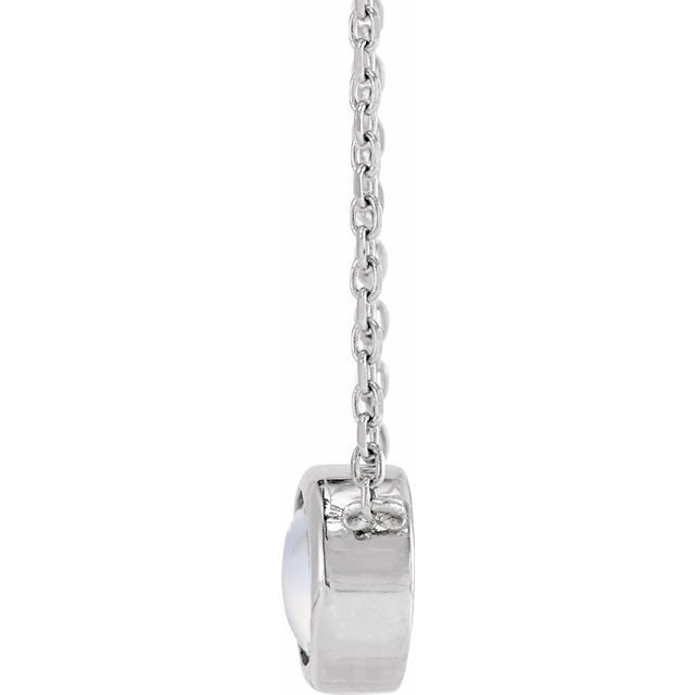 14K White Cabochon Natural Rainbow Moonstone Bezel-Set 18' Necklace