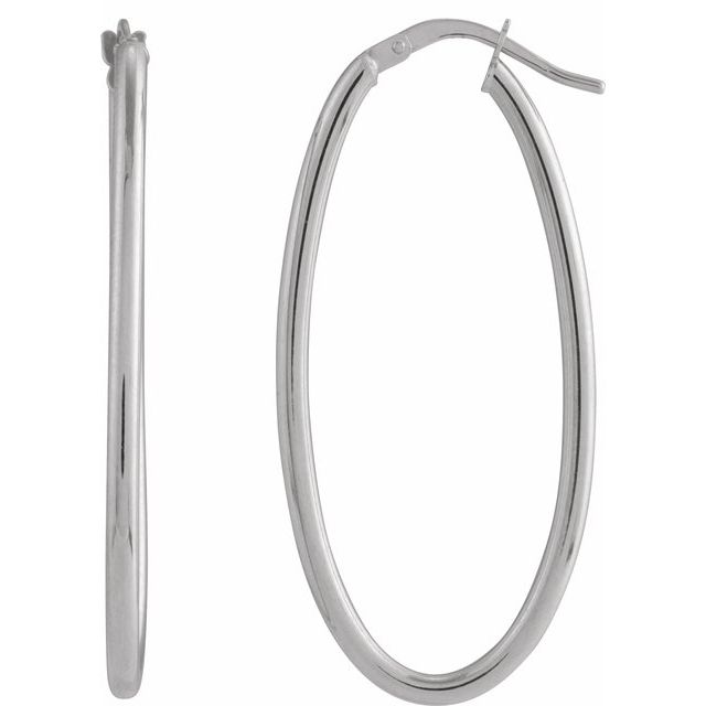 14K White Elongated Oval Tube 41.5 mm Hoop Earrings