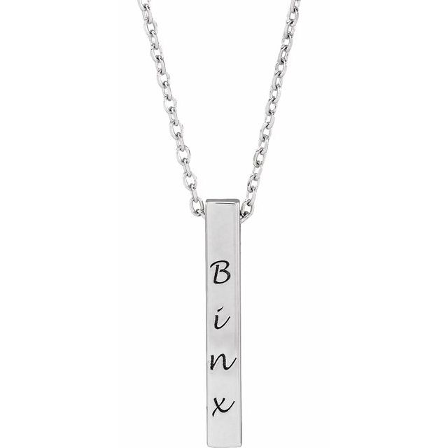 14K White Engravable Four-Sided Bar 16-18' Necklace