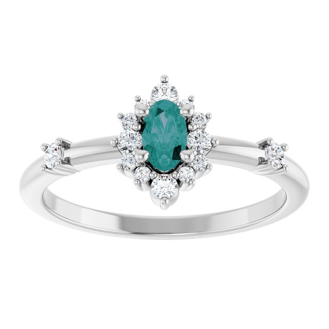 14K White Lab-Grown Alexandrite & 1/6 CTW Natural Diamond Halo-Style Ring