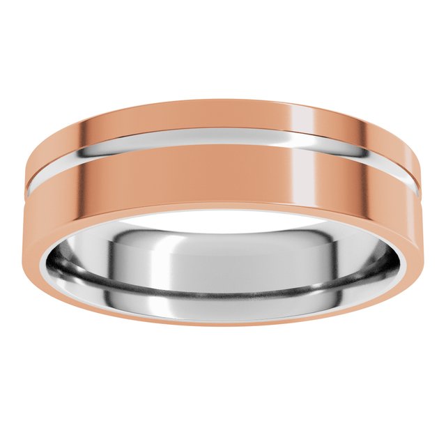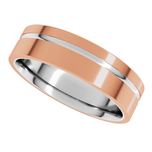 14K White/Rose 6 mm Off-Centered Groove Band Size 10.5
