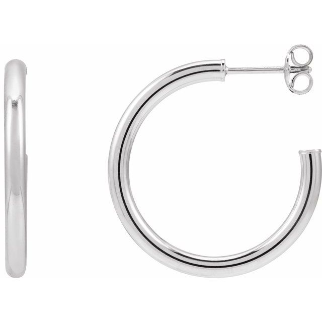 14K White Tube 25 mm Hoop Earrings