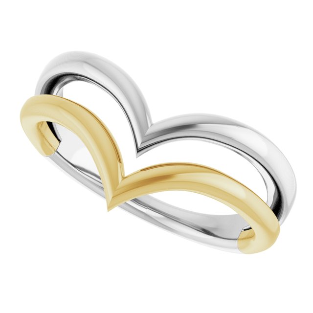 14k White & Yellow Double V Ring