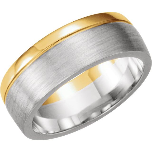 14k White/yellow 6.75 Mm Flat Edge Band With Polished & Satin Finish Size 9.5
