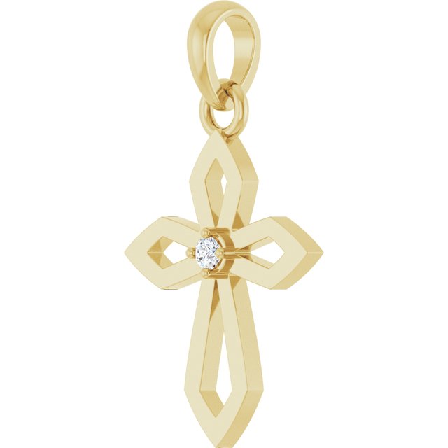 14K Yellow .02 CT Natural Diamond Cross Pendant