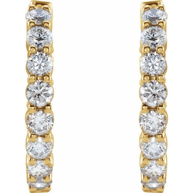 14K Yellow 1 CTW Lab-Grown Diamond Inside-Outside Hinged 19.3 mm Hoop Earrings
