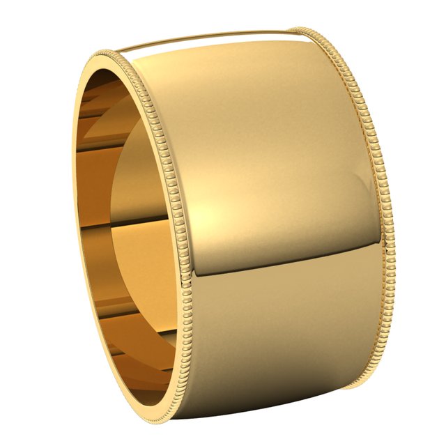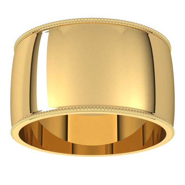 14K Yellow 11 mm Milgrain Half Round Light Band Size 6.5