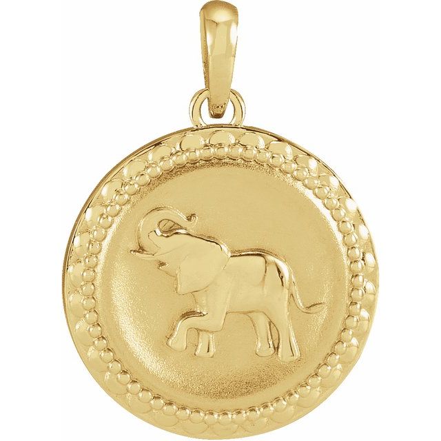 14K Yellow 12.78 mm Elephant Disc Pendant