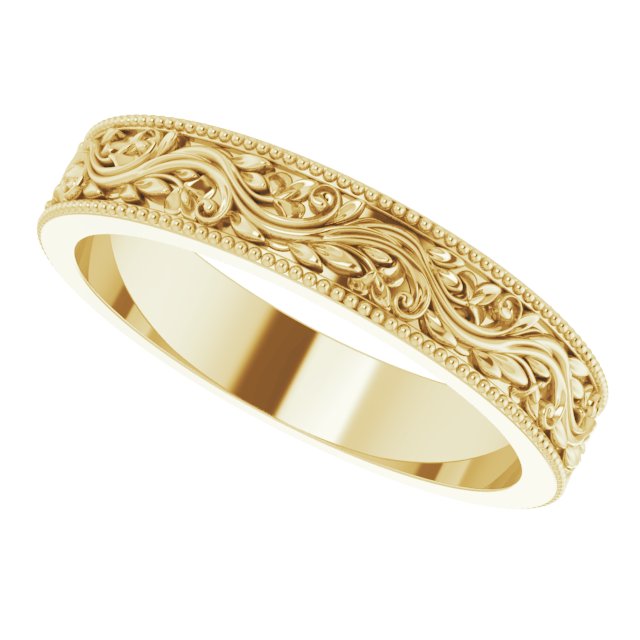 14K Yellow 4 mm Sculptural Milgrain Band Size 7
