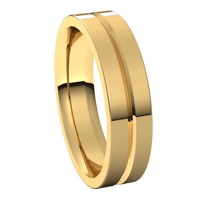 14K Yellow 5 mm Grooved Flat Comfort Fit Band Size 9