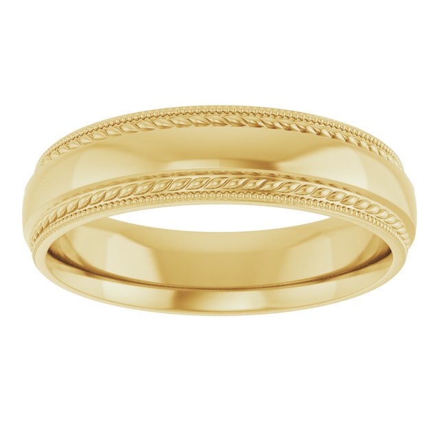 14K Yellow 5 mm Rope & Milgrain Edge Band Size 10