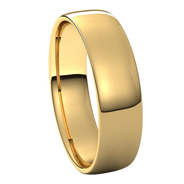 14K Yellow 6 mm Comfort-Fit Lightweight European-Style Band Size 10