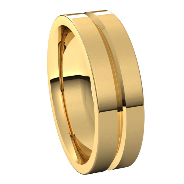 14K Yellow 6 mm Grooved Flat Comfort Fit Band Size 10