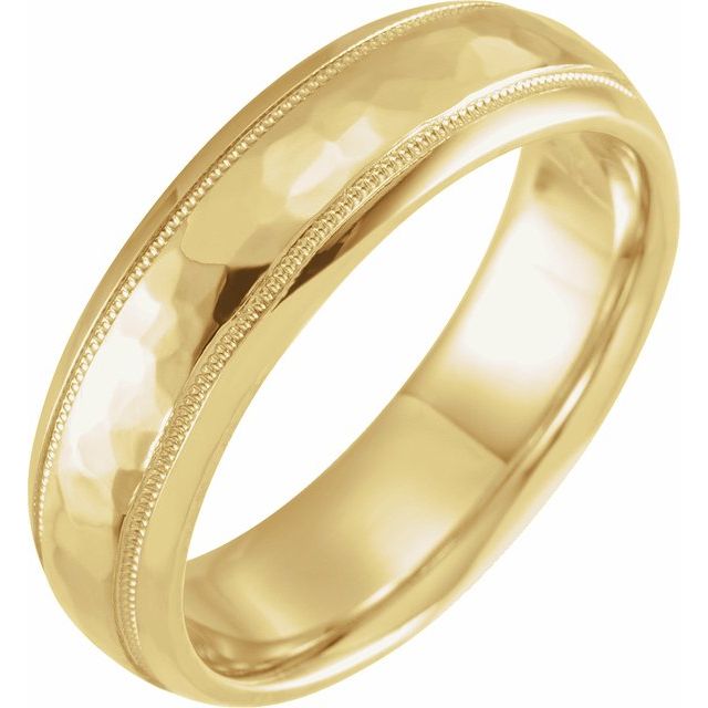 14K Yellow 6 mm Half Round Band with Hammered Texture & Milgrain Size 12.5