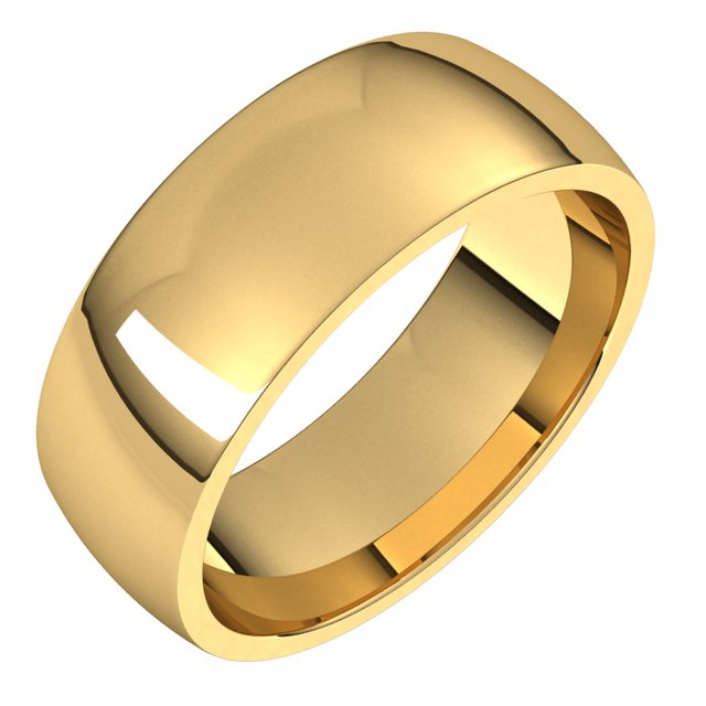 14K Yellow 7 mm Half Round Comfort Fit Light Band Size 8.5