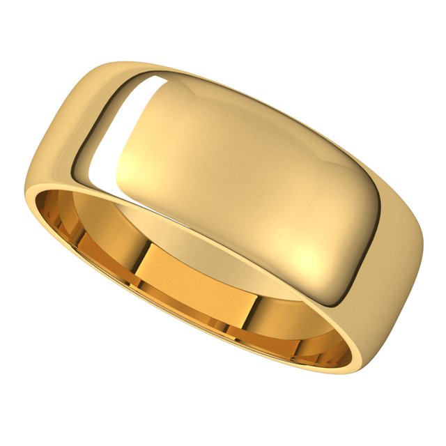 14K Yellow 7 mm Half Round Light Band Size 7.5