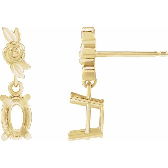 14K Yellow 8x6 mm Oval Right Floral Earring Mounting