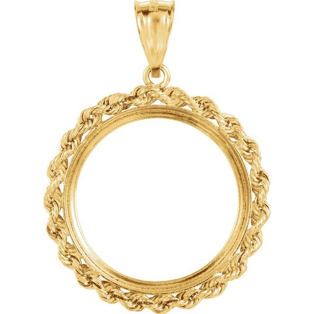 14K Yellow Coin Frame Bezel Pendant Mounting for 22x1.8 mm Coin