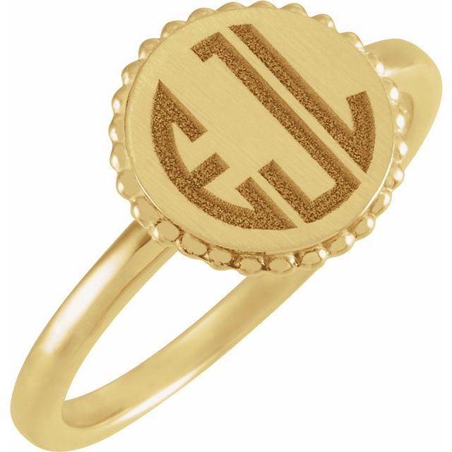 14k Yellow Engravable Beaded Ring