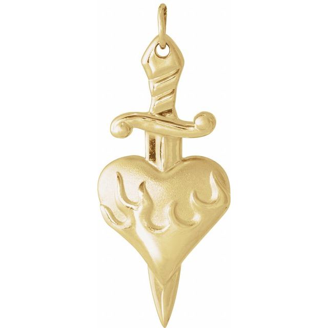 14K Yellow Heart & Dagger Pendant