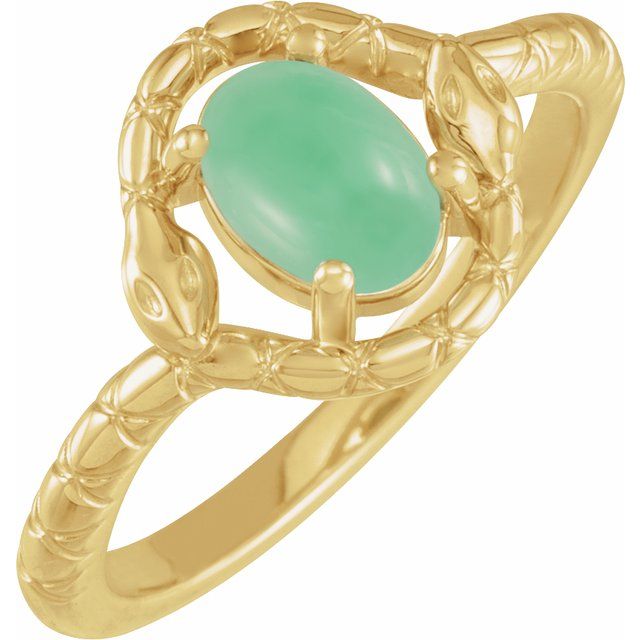 14K Yellow Natural Green Chrysoprase Snake Ring