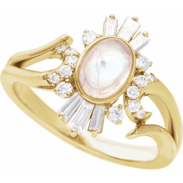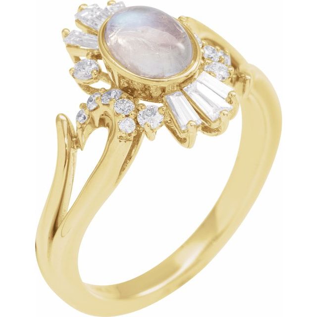 14K Yellow Natural Rainbow Moonstone & 1/2 CTW Natural Diamond Halo-Style Ring
