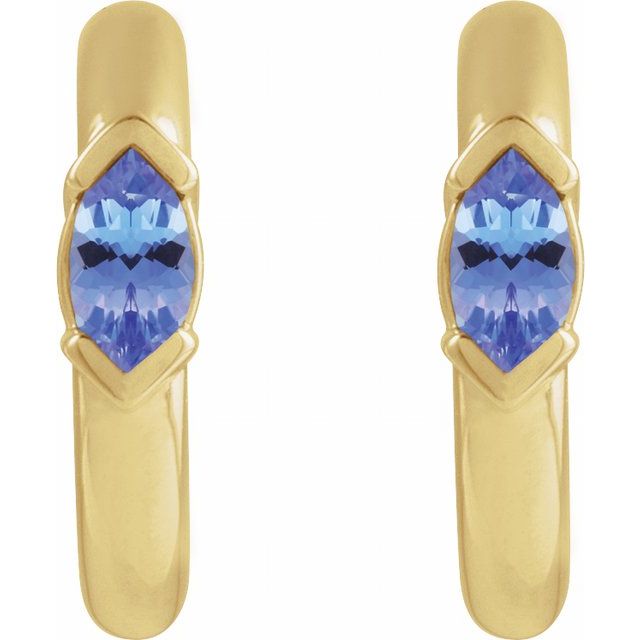 14K Yellow Natural Tanzanite Hoop Earrings