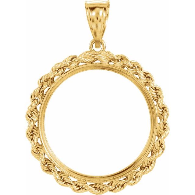 14K Yellow Rope Coin Frame Bezel Pendant Mounting for 22.5x1.4 mm Coin