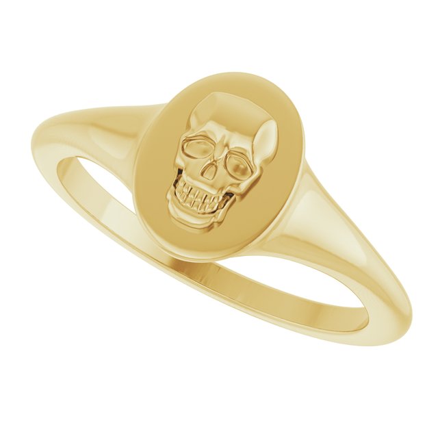 14K Yellow Skull Signet Ring