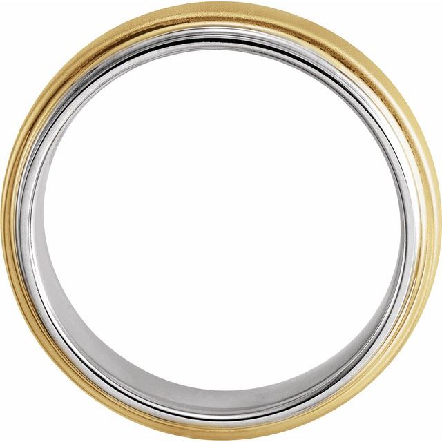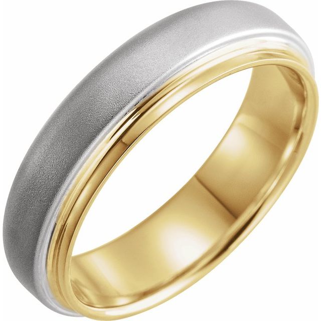 14k Yellow & White 6 Mm Edged Band With Brushed Finished Size 10.5
