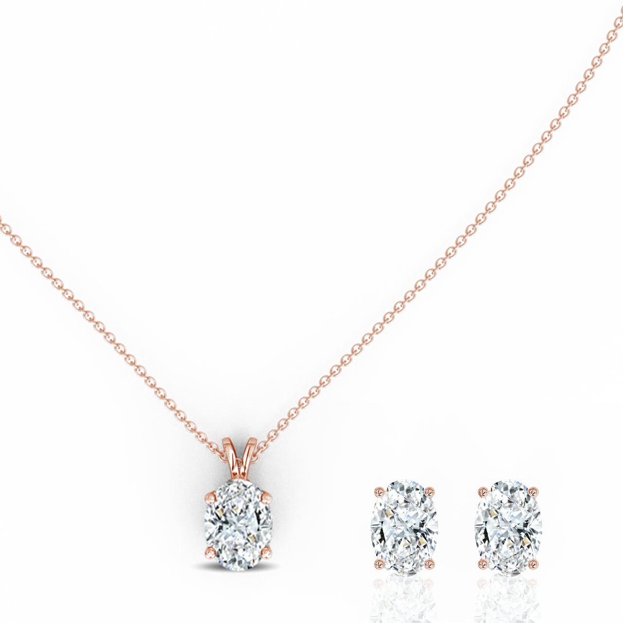 This exquisite pendant set features a stunning combination of GIA Certified Natural diamonds and luxurious 18k gold. The centerpiece is a 2.00ct oval brilliant diamond of F color and SI clarity, elegantly set in an 18k gold pendant and suspended from a 16" cable chain. Paired with matching oval-shaped natural diamond stud earrings, also crafted in 18k gold, the set offers a total diamond weight of 2.00 carats, providing a radiant and timeless sparkle. Each piece is designed to elevate your style with both luxury and simplicity, making it perfect for everyday elegance or special occasions. Secure push backings on the earrings ensure comfort and ease, making this set a sophisticated choice for any jewellery lover.