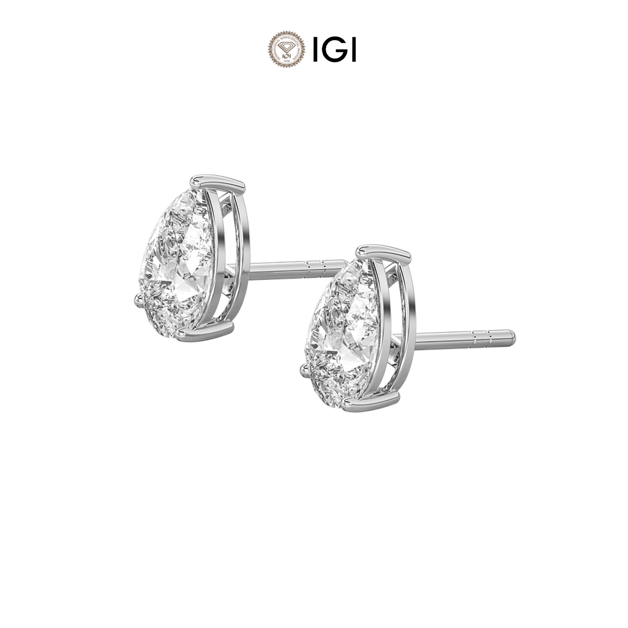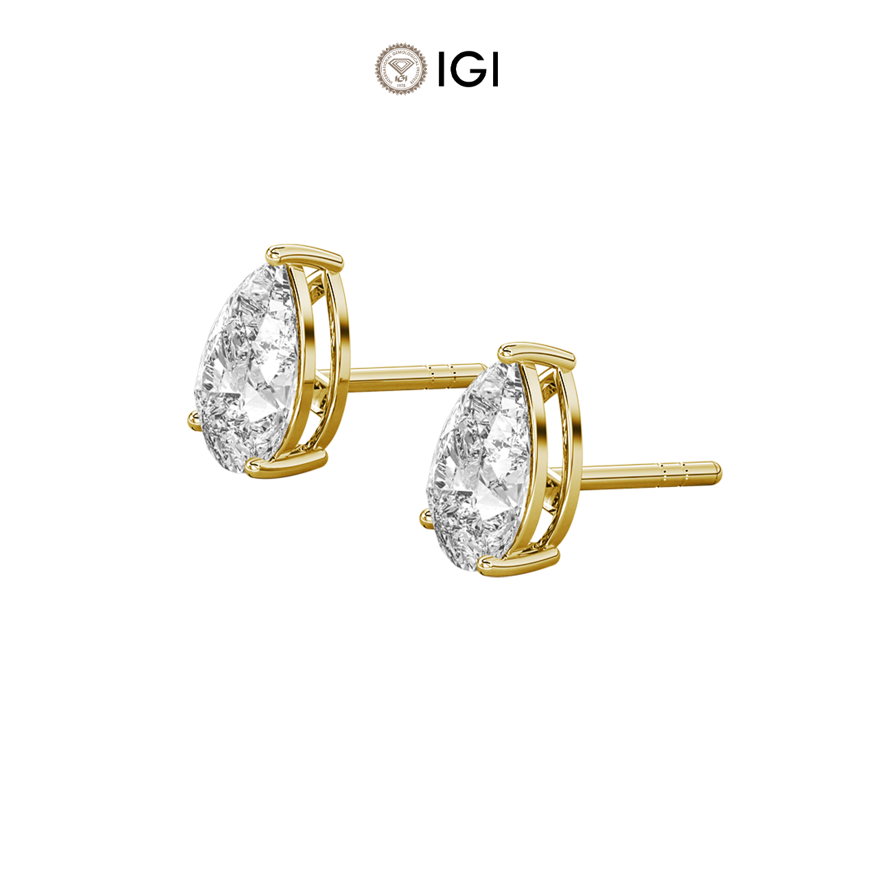 Elevate your elegance with these stunning Pear-shaped lab-grown diamond stud earrings. Crafted in 18K gold, these earrings feature a total diamond weight of 2 carats, offering a sustainable and radiant sparkle. The pear diamonds are carefully set to enhance their brilliance, creating a sophisticated and timeless look. With secure push backings, these earrings provide a comfortable and effortless wear, perfect for both everyday chic and special occasions.