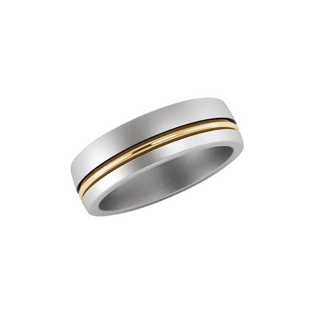 Platinum & 18k Yellow 6 Mm Grooved Band With Brush Finish Size 8.5