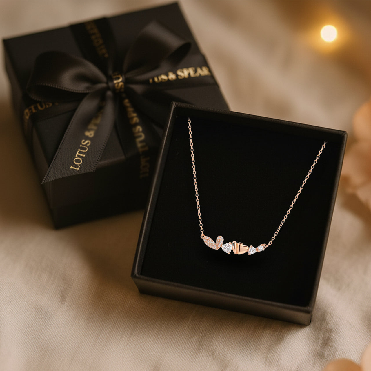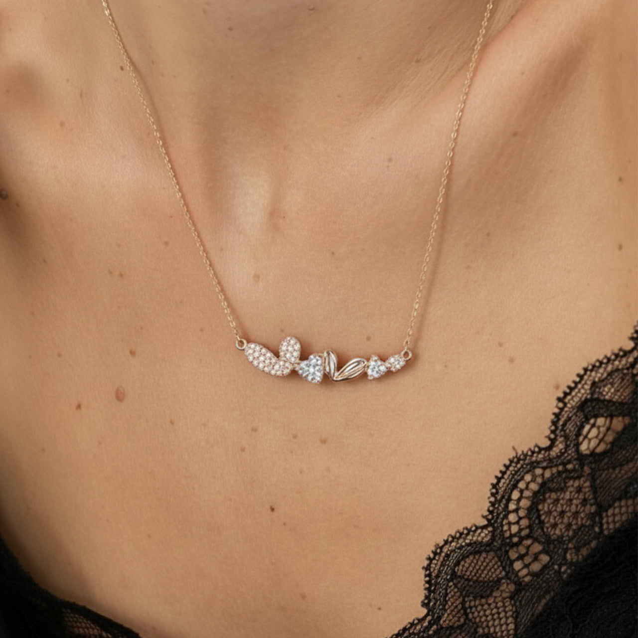 The Shimmer Play Necklace captures the rhythm of nature in motion — petals unfolding in sparkling harmony. Each CZ-studded motif celebrates growth, beauty, and the art of subtle glamour.